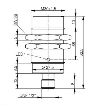 |  | DW-AS-513-M30-120 | 40 | M 30 | Sporgente | PNP, NA | Connettore S12 | Ottone Cromato | 67 | 100 | -25…+70° |